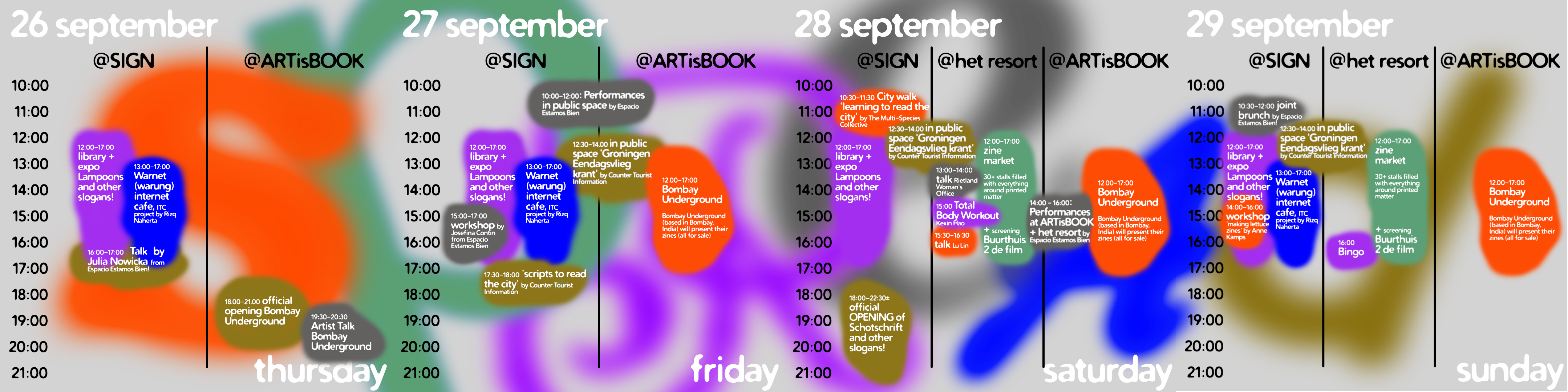 At SIGN the emphasis is on creating a pamphleteering, absurdist library by human and non-human artists. These are: Project ITC + Espacio Estamos Bien + The Multi-Species Collective + Counter Tourist. More info can be found here.